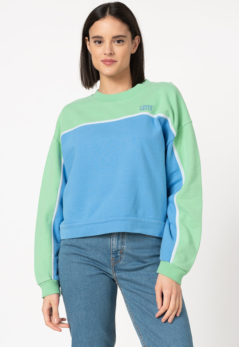 Caracteristici Culoare: verde – albastru Imprimeu: uni – logo Stil: casual Croiala: lejera Material: bumbac Decolteu: rotund Lungime maneci: lungi Compozitie Exterior: 100% bumbac Info model Modelul poarta un produs marimea S. Dimensiuni model: 176 cm inaltime – 86 cm bust – 65 cm talie – 93 cm; sold
