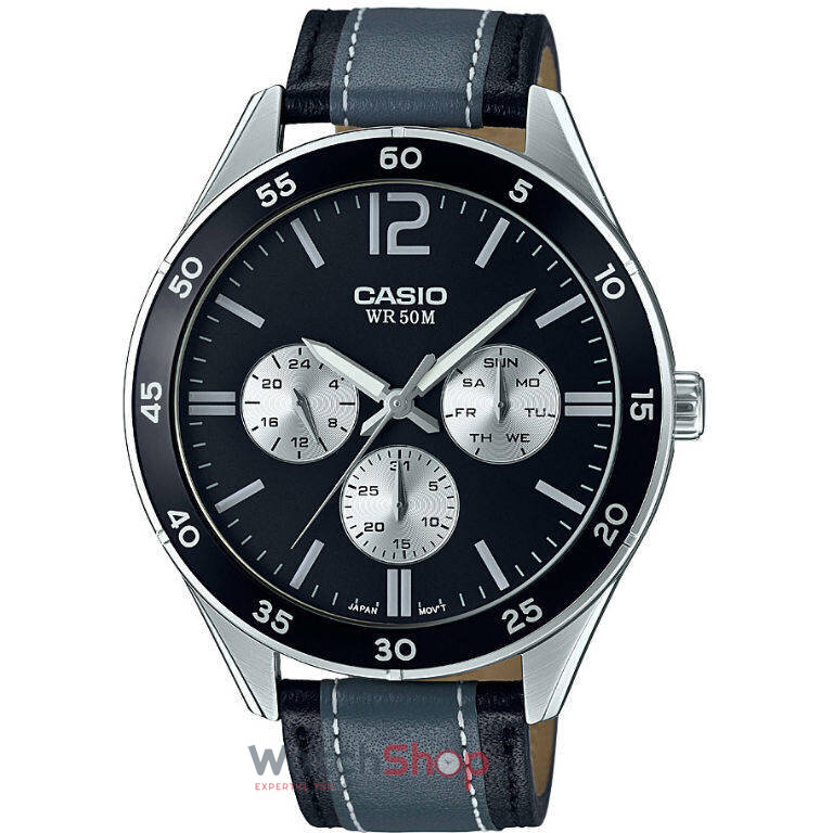 Ceas Virtue 15307JS/01 Black Leather & Silver Stainless Steel