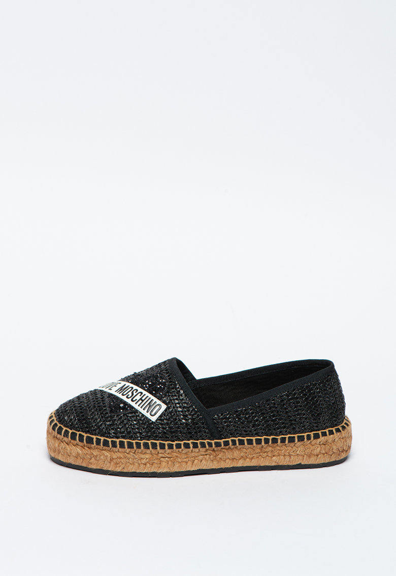 Caracteristici Tip: espadrile Culoare: negru – alb – maro caramel Stil: casual Varf: rotund Tip talpa: flatform Material: materiale speciale Detalii: in forma de inima – logo – aplicatie stralucitoare – aplicatie de iuta – aspect tesut Inchidere: fara inchidere Compozitie Exterior: alte materiale Interior: alte materiale – piele Talpa: alte materiale Dimensiuni Inaltime talpa: 3.5 cm Dimensiunile sunt aproximative.