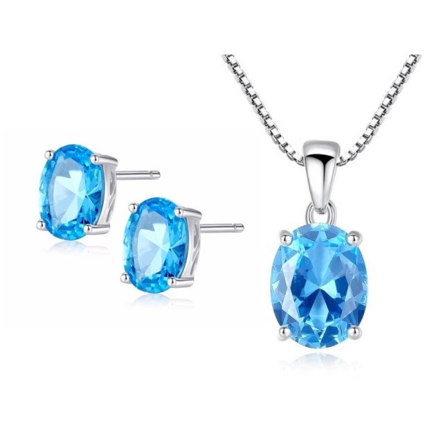 Cercei si Colier din argint – marcat 925 Decorat cu pietre topaz albastru, claritate VVS Dimensiuni pandantiv: topaz 3.36ct (0.7 x 0.9 cm) Lungime lant : 40.0-45.0 cm (ajustabil) Cercei decorati cu Topaz albastru 1.8ct (0.5 x 0.7 cm) / fiecare Greutate cercei: 1 gram / fiecare Produsul va fi livrat in cutie de bijuterii oferita GRATUIT si va fi insotit de CERTIFICAT DE GARANTIE.