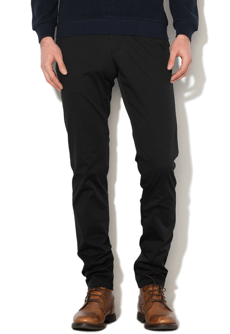 Caracteristici Tip: pantaloni chino Culoare: negru Model: uni Material: bumbac Stil: casual Croiala: regular fit Talie: medie Lungime: lungi Inchidere: nasture – fermoar Compozitie Exterior: 97% bumbac – 3% elastan Info model Modelul poarta un produs marimea 32. Dimensiuni model: 188 cm inaltime – 96 cm bust – 85 cm talie – 98 cm sold