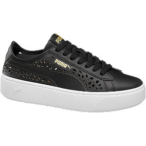 Pantofi casual de dama, negri, cu perforatii moderne, si logo PUMA auriu. Pantofii sunt perfecti pentru plimbari urbane si se potrivesc tinutelor casual.